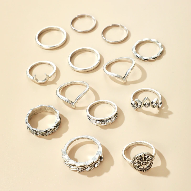 مجموعة خواتم نسائية مطلية بالفضة 12 قطعه
