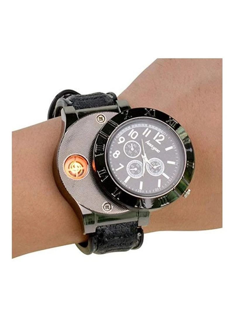 ساعة رجالية سوداء فاخرة مع ولاعة الكترونية