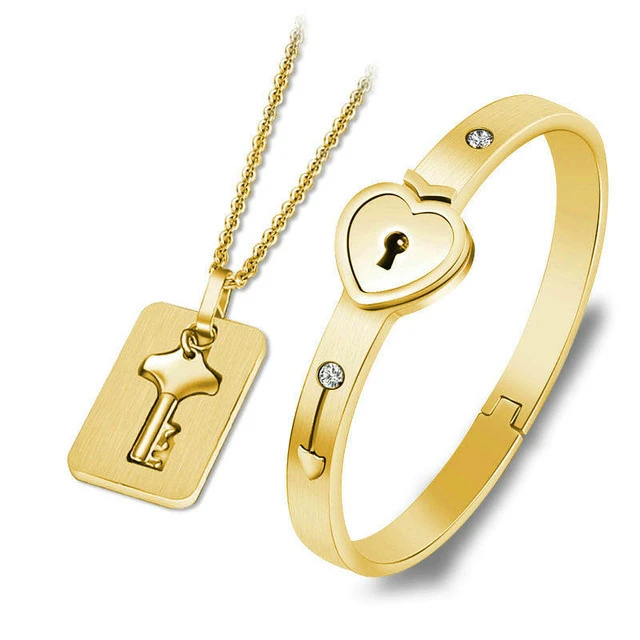 سلس واسويرة مفتاح القلب المطلية بالفضة