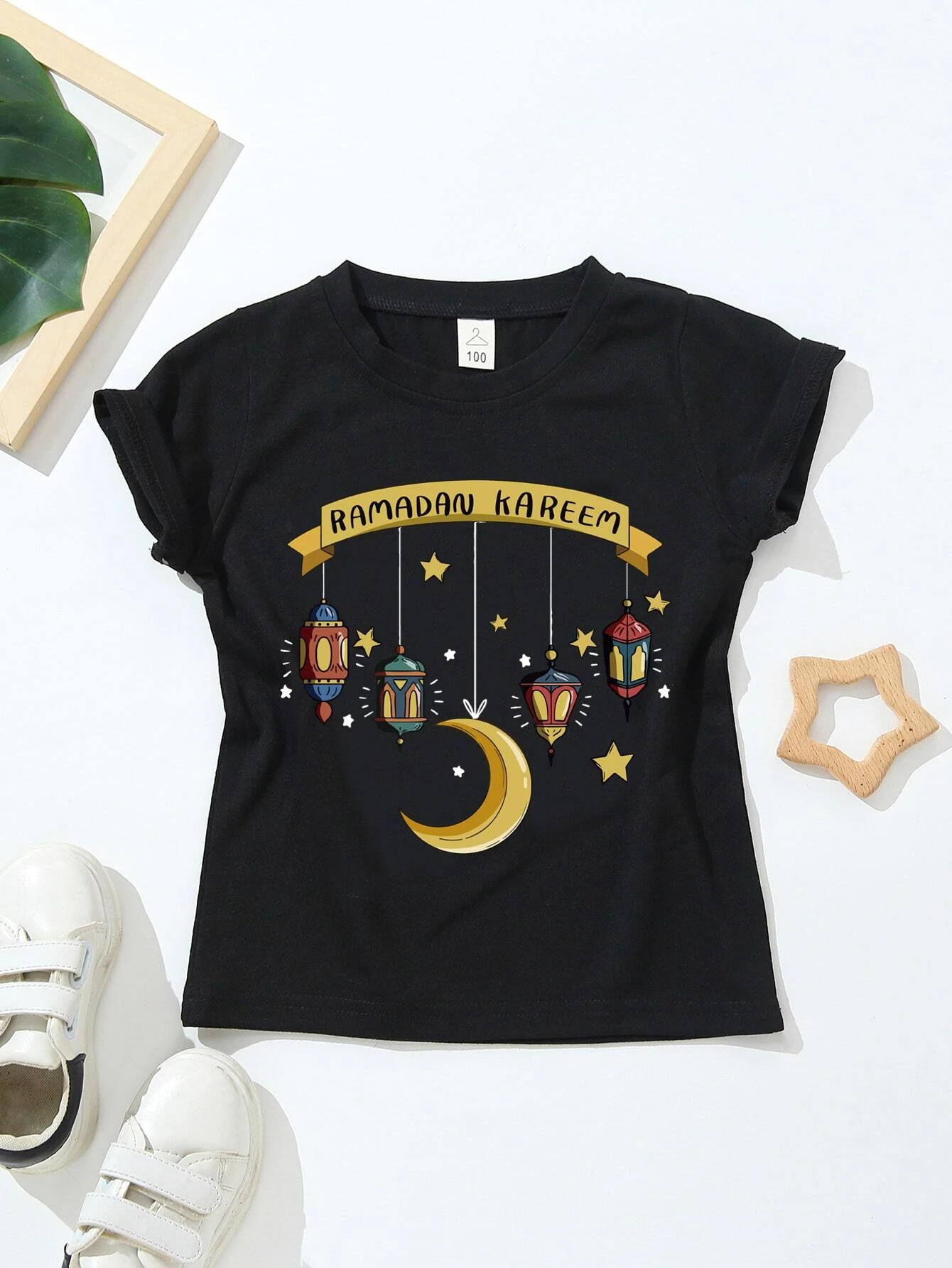تي شيرت بطباعة رمضان كريم وغيرها من تصاميم رمضان \n \nولادي وبناتي \n \nمقاسات من 1-7 سنوات